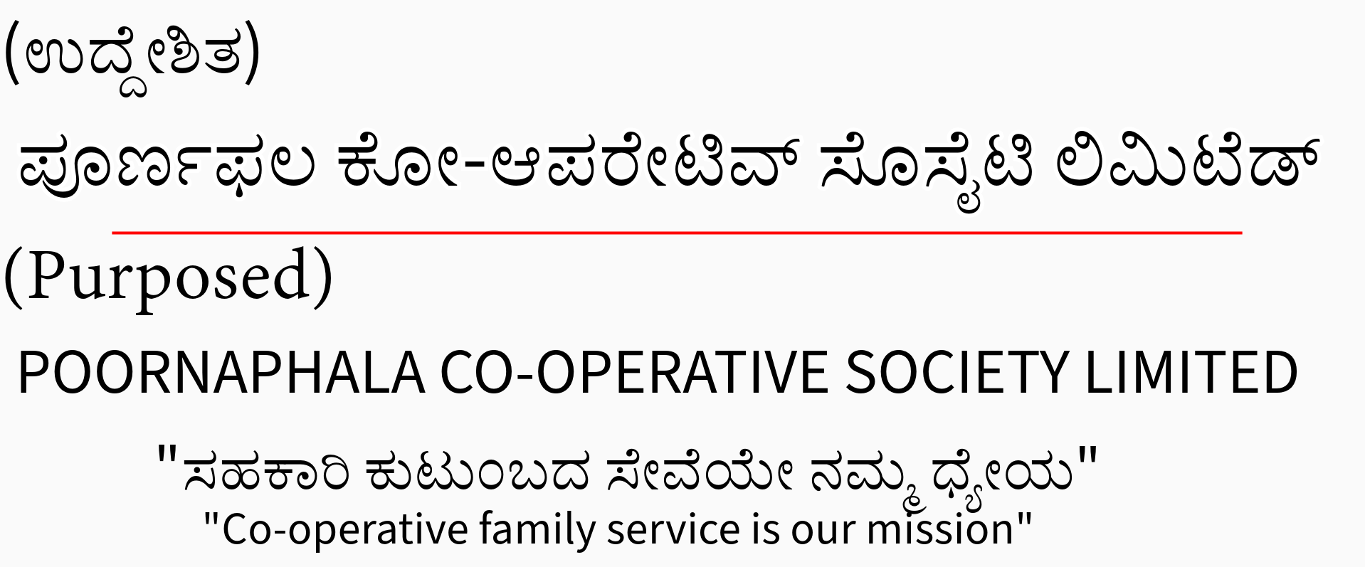 January 9, 2025March 12, 2025Poornaphala Cooperative ಪೂರ್ಣಫಲ ಕೋ-ಆಪರೇಟಿವ್ ಸೊಸೈಟಿ ಲಿಮಿಟೆಡ್ (ಉದ್ದೇಶಿತ ) POORNAPHALA CO-OPERATIVE SOCIETY LIMITED (Purposed)